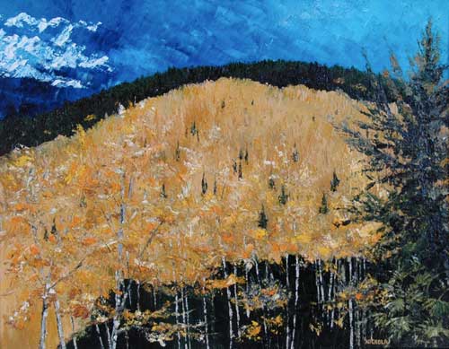 Title: Aspen Grove Medium: Oil on canvas Size Unframed: 28” x 22" Size Framed: 34” x 28” (gold paint over wood) Price Unframed: $1,195.00 Price Framed: $1,245.00
