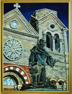 Title: St. Francis at the Cathedral Medium: Oil on canvas Size Unframed: 30” x 40' Size Framed: 33” x 43” (gold paint on wood) Price Unframed: $2,195.00 Price Framed: $2,295.00