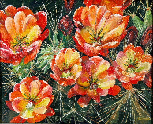 Title: Cholla Flowers 3 Medium: Oil on canvas Size Unframed: 20” x 16" Size Framed: 25 1/2” x 21 1/2” (grey barn wood) Price Unframed: $695.00 Price Framed: $745.00