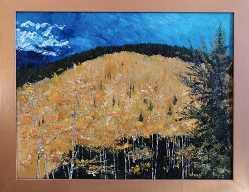 Title: Aspen Grove Medium: Oil on canvas Size Unframed: 28” x 22" Size Framed: 34” x 28” (gold paint over wood) Price Unframed: $1,195.00 Price Framed: $1,245.00