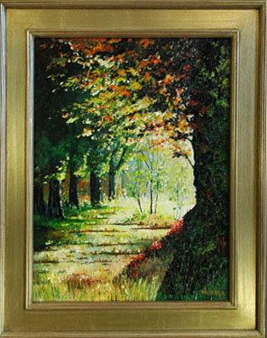 Title: Light in the Forest 1 Medium: Oil on canvas Size Unframed: 18” x 24" Size Framed: 24” x 30” (silver metallic) Price Unframed: $895.00 Price Framed: $995.00 Giclee print on canvas: $200.00